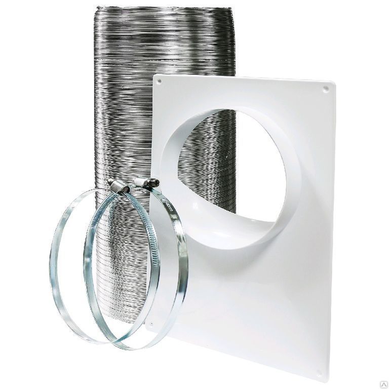 • В комплект поставки входит: 2 хомута, пластиковая торцевая площадка ПТП и металлический гибкий воздуховод ВА.